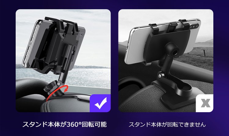 【車載スマホホルダー】360°自由自在な可動域を実現、 利便性抜群。車載スマホホルダーだけじゃない! 様々なシーンで大活躍!