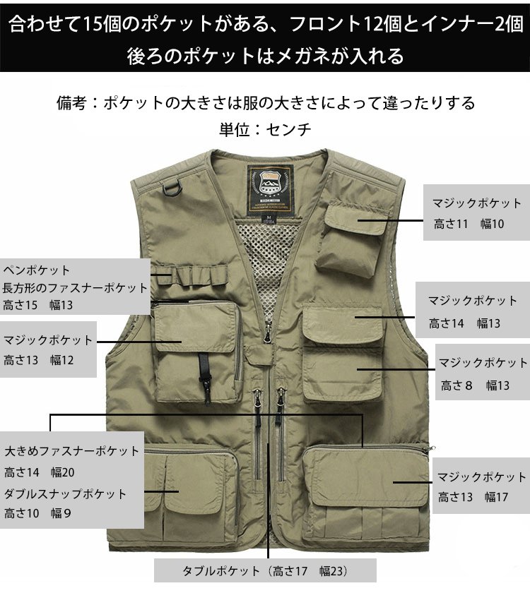 メンズ多ポケットアウトドアベスト